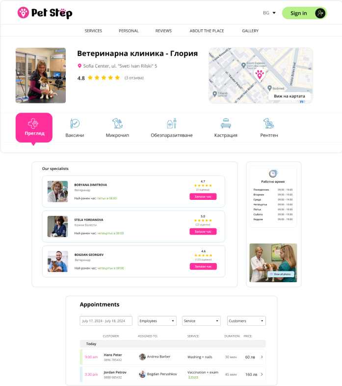Присъединете се към PetStep днес и оставете ние да помогнем на вашия груминг бизнес да расте! Привлечете повече клиенти, спестете време и направете домашните любимци красиви – всичко това, докато улеснявате живота си.